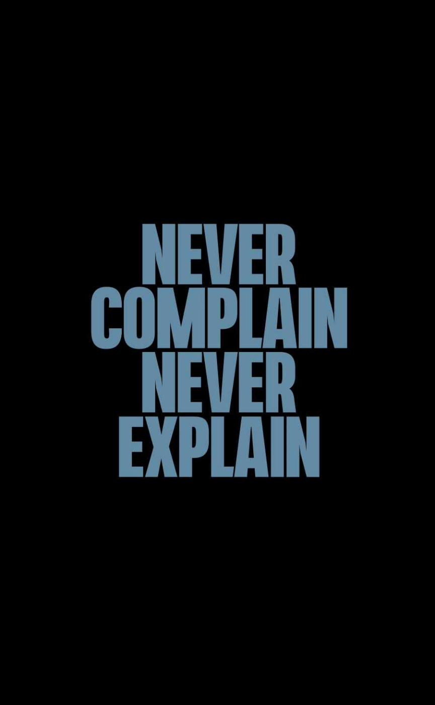 NEVER COMPLAIN, NEVER EXPLAIN